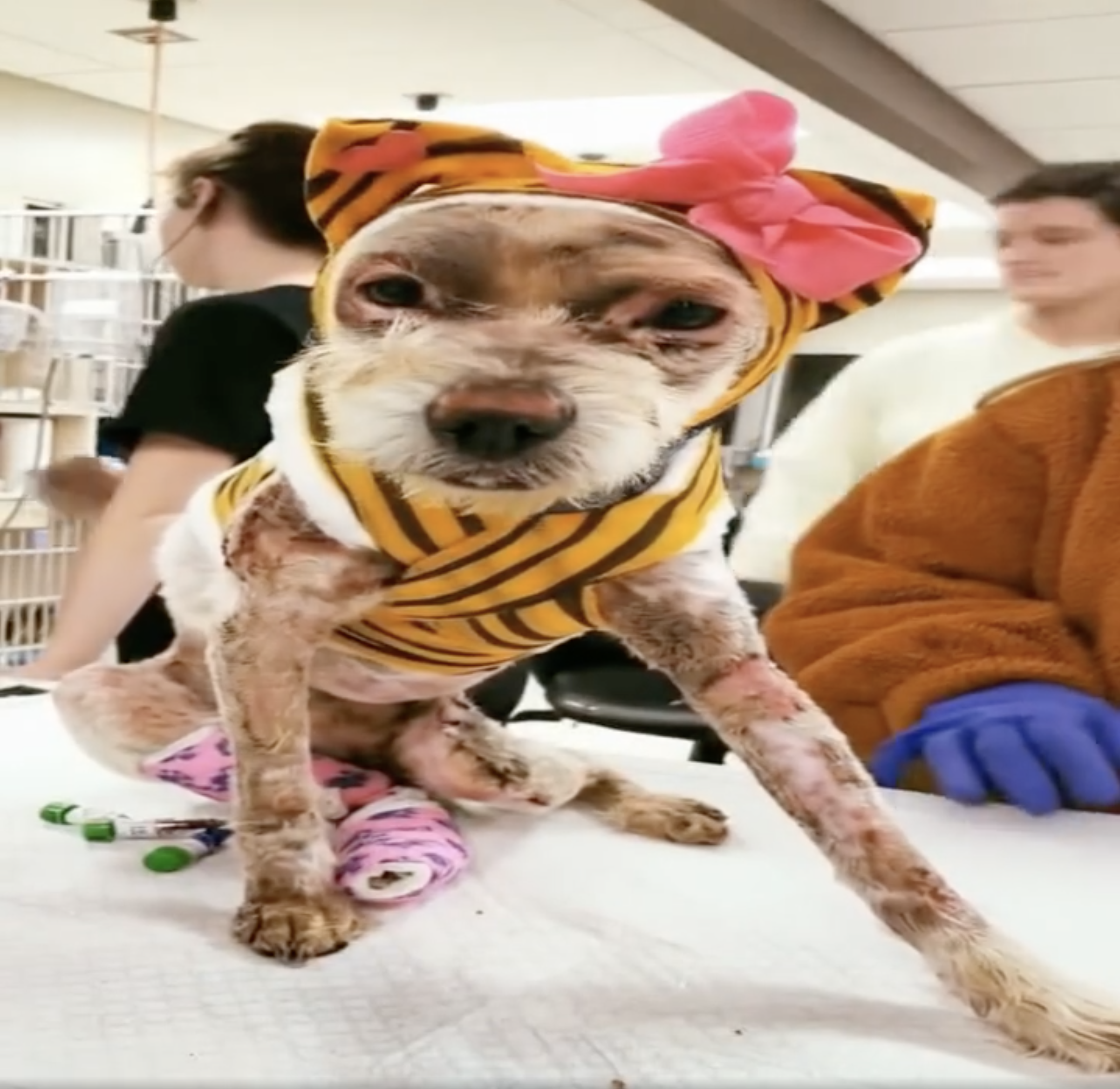 The story of Phoenix’s harrowing ordeal began on an ordinary day when a passerby heard faint whimpers coming from a charred backpack abandoned in a deserted alley. Upon closer inspection, the good Samaritan uncovered a horrific sight — a dog severely burned but miraculously clinging to life. The authorities were notified, and Phoenix was rushed to the nearest animal hospital where a team of dedicated veterinarians worked tirelessly to save her.