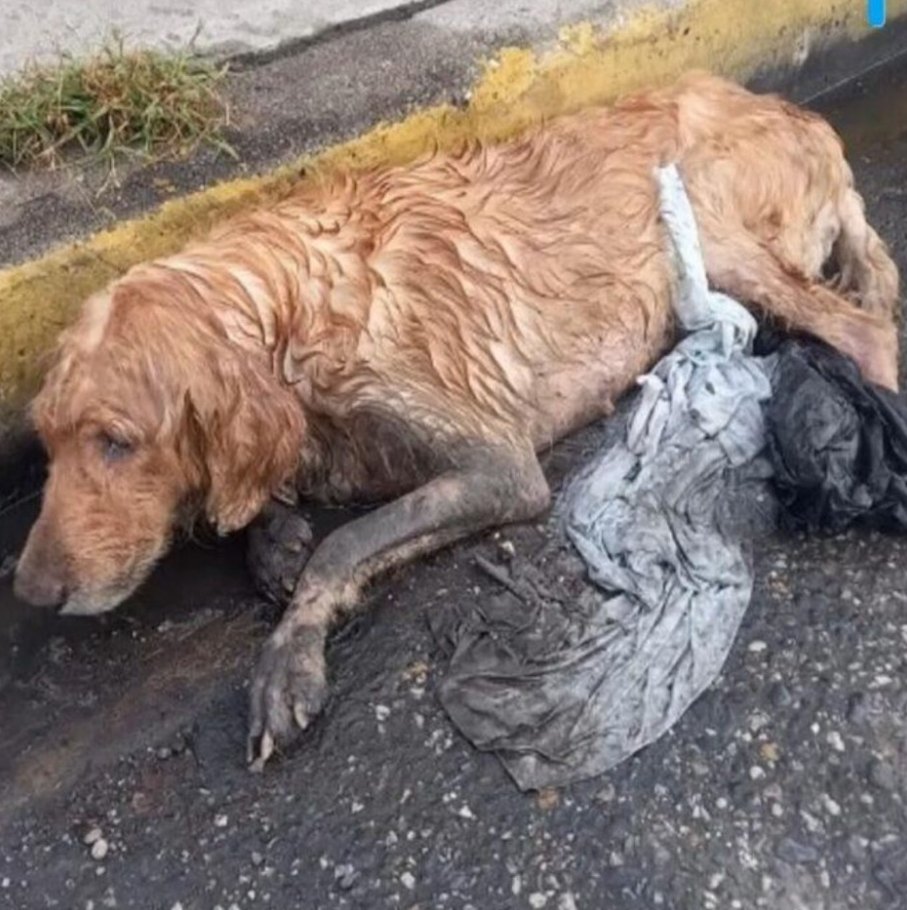 Neighbors in the area report that the puppy appeared the night before, probably abandoned. Since then, he has endured cold, hunger, and loneliness, not moving much from the same spot, as if waiting for someone to return for him.