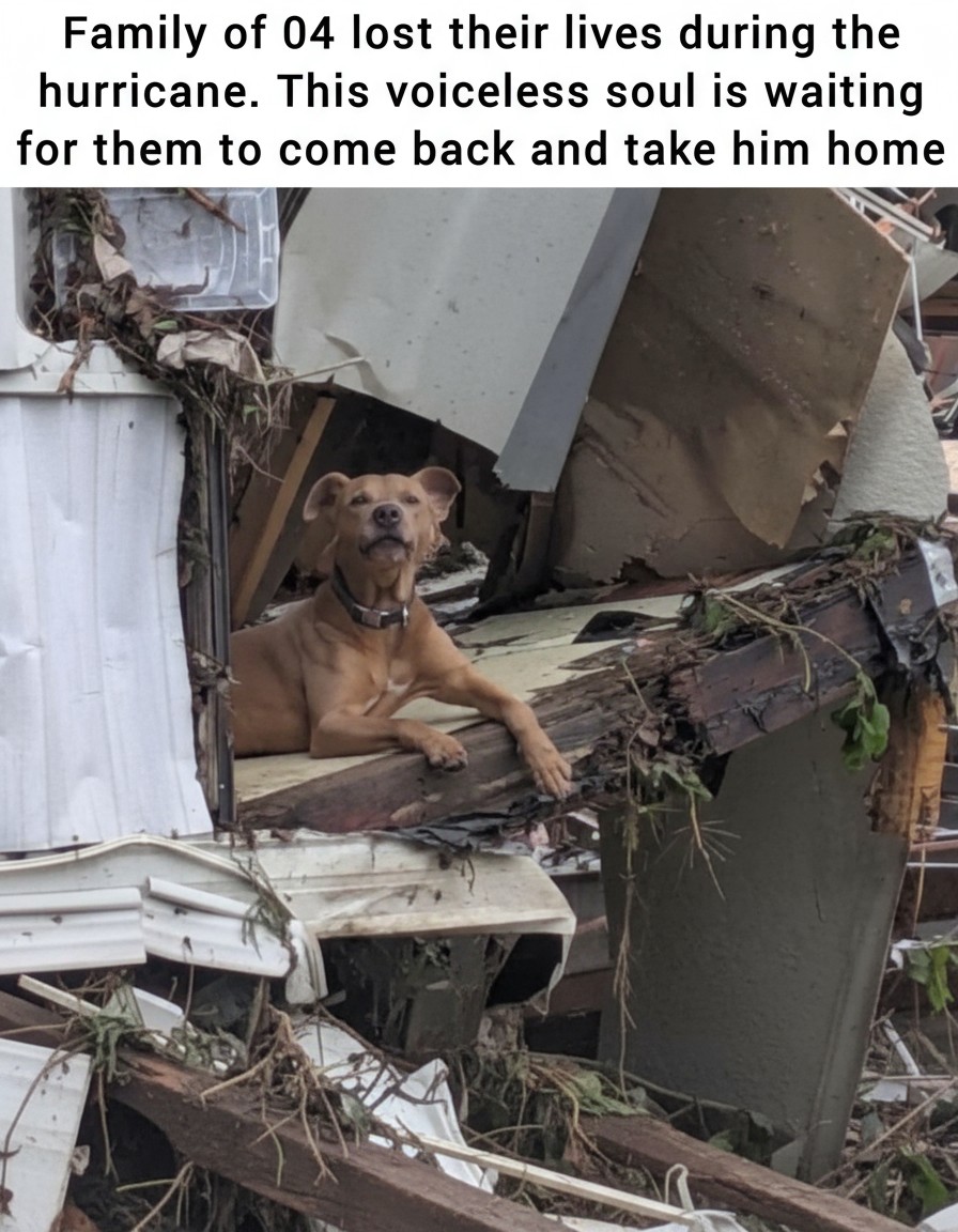 The devastating hurricane had swept through, leaving a trail of destruction and sorrow in its wake. Amidst the chaos and rubble, a poignant scene unfolded that would capture the hearts of many. A lone, brown dog, later identified as Rusty, was discovered amidst the ruins of what was once a vibrant home. His posture, a mix of hope and weariness, suggested he was waiting, perhaps for a family that would never return. The image, shared across social media, quickly went viral, igniting a wave of empathy and concern for this voiceless soul. The accompanying caption painted a grim picture: a family of four lost to the storm, leaving Rusty behind, an unwitting guardian of their shattered memories. This heartbreaking narrative quickly became a symbol of the silent suffering often overlooked in the aftermath of natural disasters.