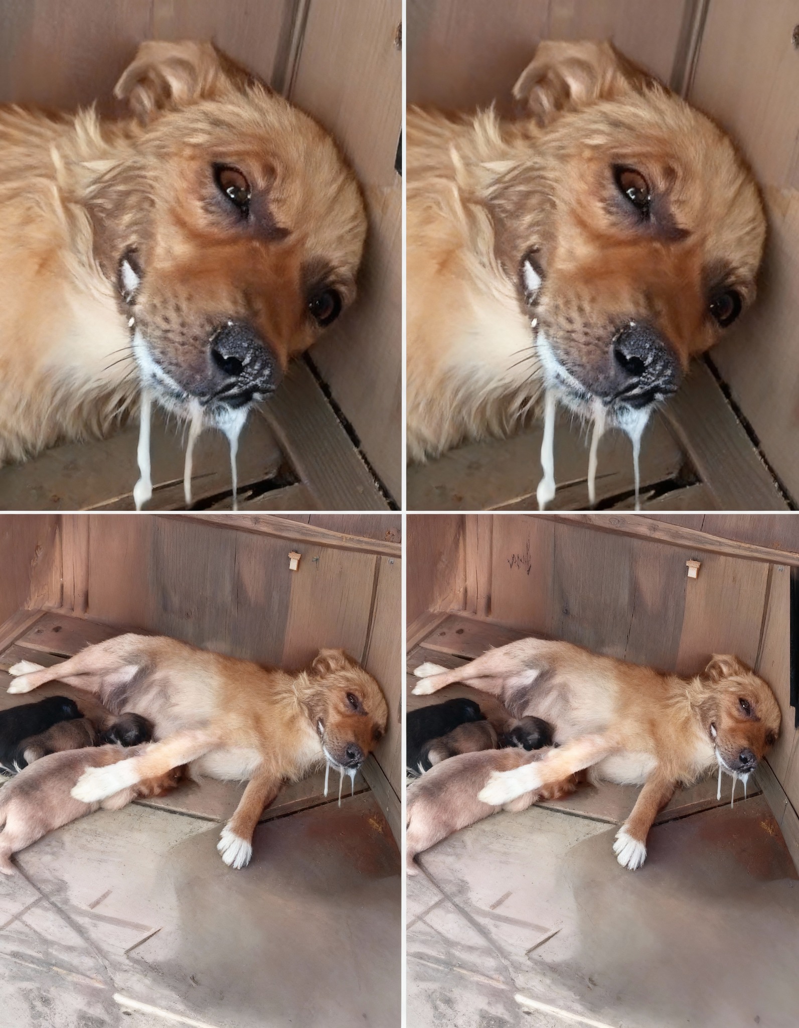 The scene was one of profound despair. A golden-brown dog, later identified as Daisy, lay motionless in a tattered cardboard box, her once vibrant fur matted and dull. Saliva frothed from her mouth, her eyes barely slits, reflecting an unimaginable pain that seemed to grip her very essence. It was clear she had been cruelly poisoned, her body wracked with convulsions, her breath shallow and irregular. A local resident, alerted by a neighbor, found her in this horrific state, far from any signs of life or hope. The veterinarian, after a grim examination, offered little reassurance, suggesting that even if she survived the initial trauma, the long-term effects would likely be debilitating. Yet, amidst this bleak prognosis, there was an unseen force at play, a silent, powerful instinct that would soon defy all expectations and touch the hearts of many.