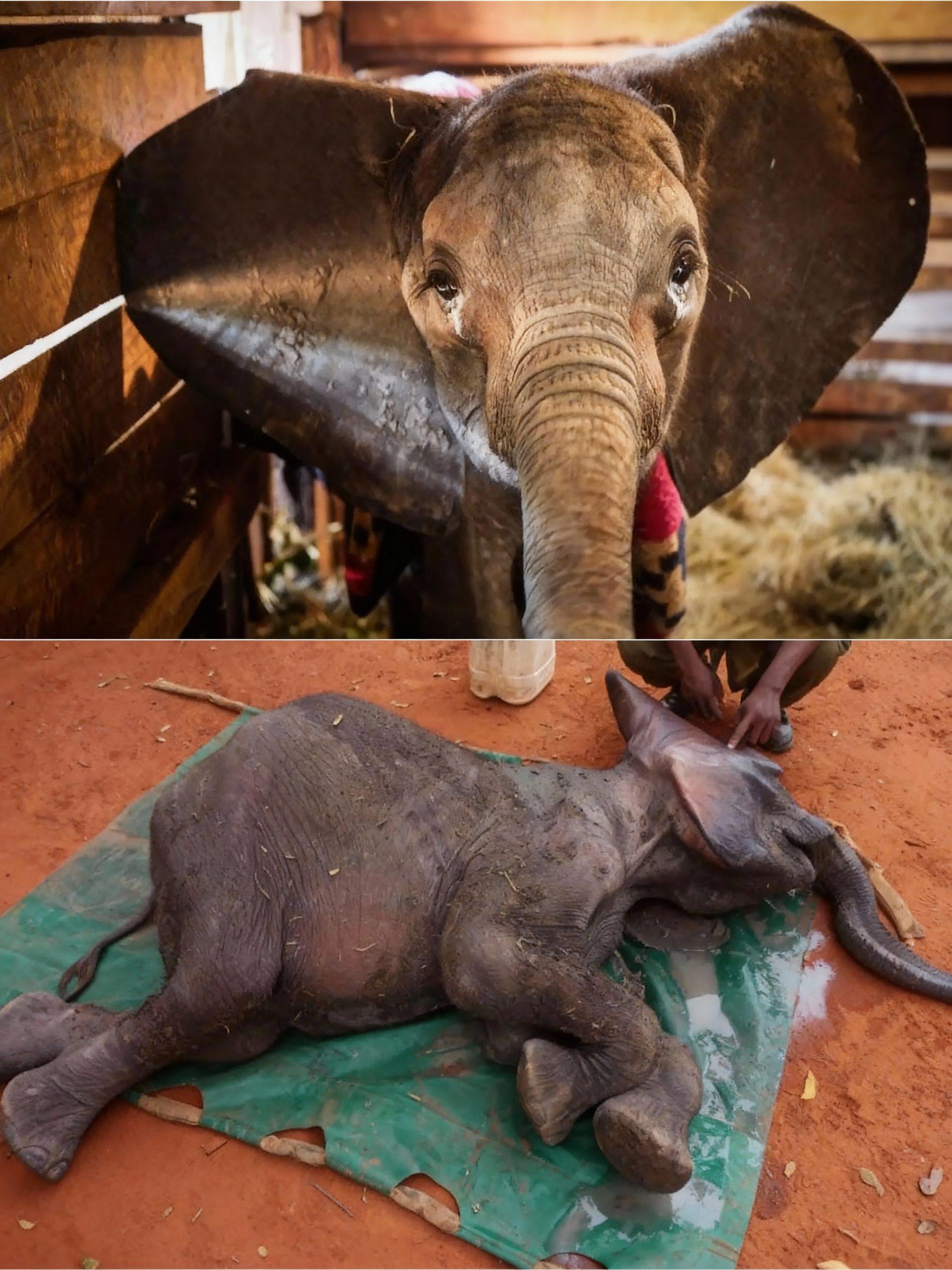 The plight of orphaned elephants is a heartbreaking consequence of poaching and habitat loss, a stark reminder of humanity’s impact on the natural world. Each year, countless calves are left alone, vulnerable, and facing an almost certain death without intervention. The images above encapsulate this struggle and the hope that dedicated conservation efforts bring. The top image shows a young elephant, its eyes wide and seemingly filled with a profound sadness, yet also a glimmer of resilience, perhaps having found safety. The bottom image, more distressing, depicts a tiny, helpless calf, emaciated and weak, lying on the ground, likely at the brink of survival. These visuals are a powerful testament to the challenges faced by these majestic creatures and the critical role played by rescue organizations. They highlight the urgent need for continued support and awareness to ensure that these intelligent and emotional beings are given a fighting chance to thrive. The journey from such a precarious state to one of health and integration back into a herd is long and arduous, demanding immense resources, expertise, and compassion from those committed to their welfare. It is a story not just of despair, but more importantly, of profound hope and the extraordinary capacity for healing and recovery when given the chance.