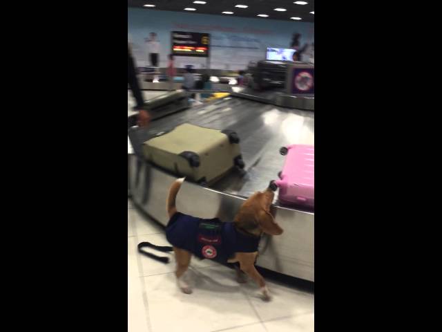 A service dog at the airport noticed this suitcase and