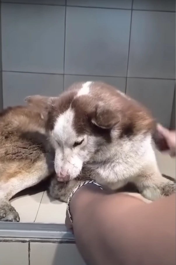 Yet he didn’t whimper. He didn’t fight. He just watched, silent, as if waiting for the world to decide his fate. I sat beside him, my hand resting near his paw, not touching, just there.