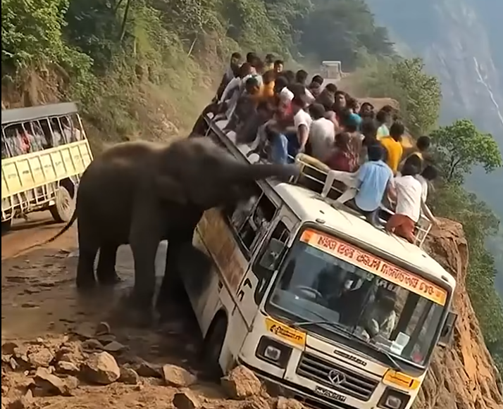 Experts who later reviewed the footage explained that the elephant may have felt threatened by the bus’s presence or was protecting its territory — a reminder that wild animals, no matter how majestic, are never predictable.