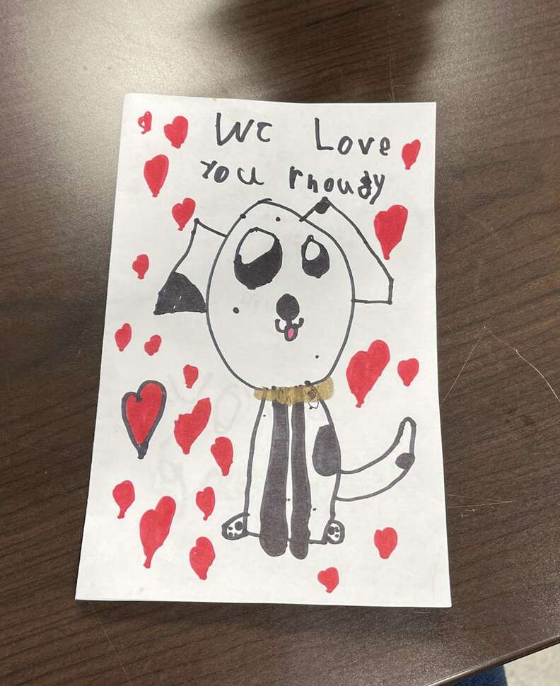 “To Rhoudy’s Previous Kids,” the shelter’s reply begins. “We got your note. We know how hard it was to say goodbye. But you were so brave and so strong. Sometimes hard decisions have to be made, but he knows how much you love him.”