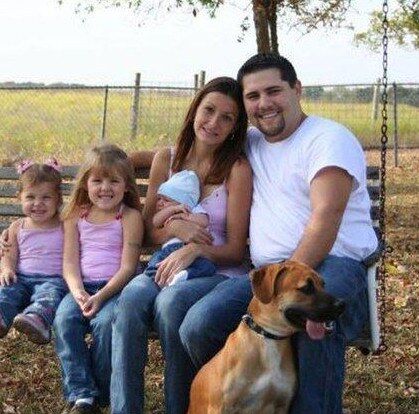 When you first see this photo, it seems completely normal, showing a dad, a mom holding a baby in her arms, two sisters, and their dog.