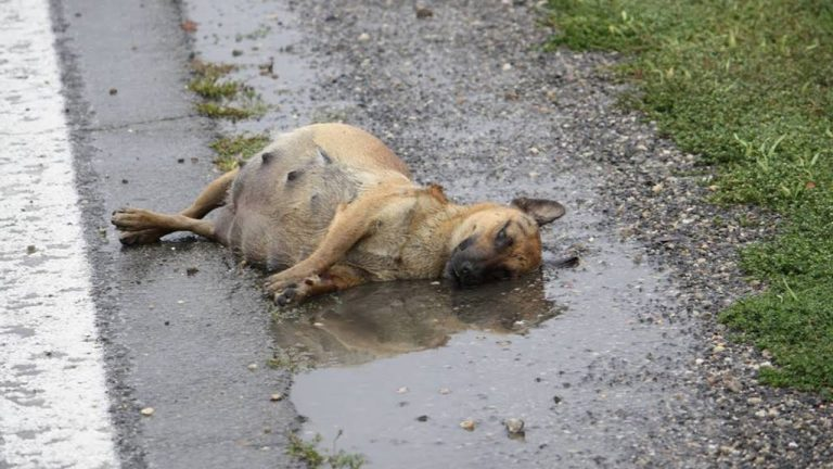 The story begins with a haunting image—one that instantly tugs at the heart. A pregnant stray dog, battered and abandoned, lies motionless on the side of a dusty road. Her body tells a story of suffering and neglect. Whoever had done this to her had not only stripped her of safety but also of dignity. When rescuers received the call, they rushed to find her, their hearts pounding with both hope and dread. But when they reached the spot, she was gone. Only faint paw prints remained in the dirt, leading into uncertainty.