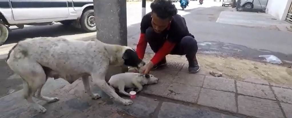 A distressed dog begs for help and shows how strong a mother’s instinct is, as this canine mother wanted to help her sick puppy.