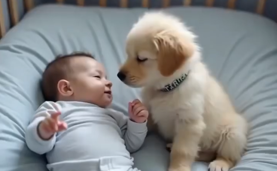 To their amazement, Noah made a few more small movements—but only after Max moved first, as if mirroring the puppy.