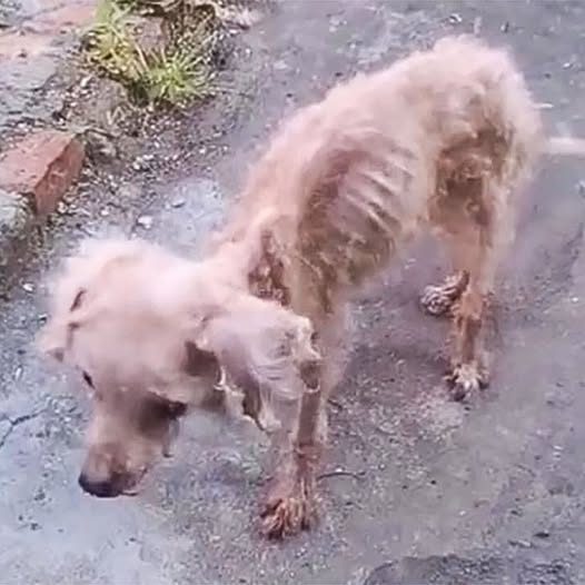 Dogs are known for their loyalty and gentle nature. They spend their lives waiting for love and companionship. So when one is abandoned or left to suffer, it leaves a deep ache in those who care.That’s exactly what happened last week when a rescue team came across a starving dog wandering the streets.No one knew where he came from or how long he had been out there. But one look at him told a story of exhaustion and hardship.His body was so thin that every rib and bone stood out. His fur was patchy and covered in fleas. With wide, teary eyes, he looked as if he was on the verge of breaking down.