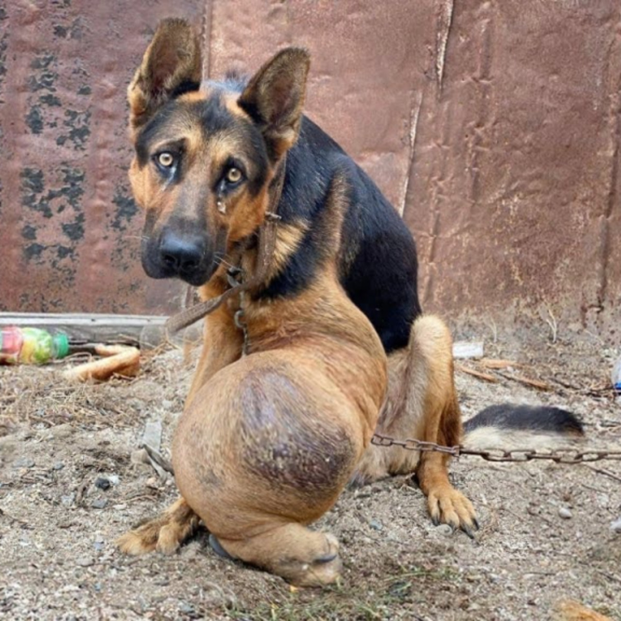 Meet Jordan, a victim of years of neglect, who was once confined by his family with a short metal chain in their backyard. Sadly, this chain restricted him to a small area, barely allowing him to move more than a couple of feet.
