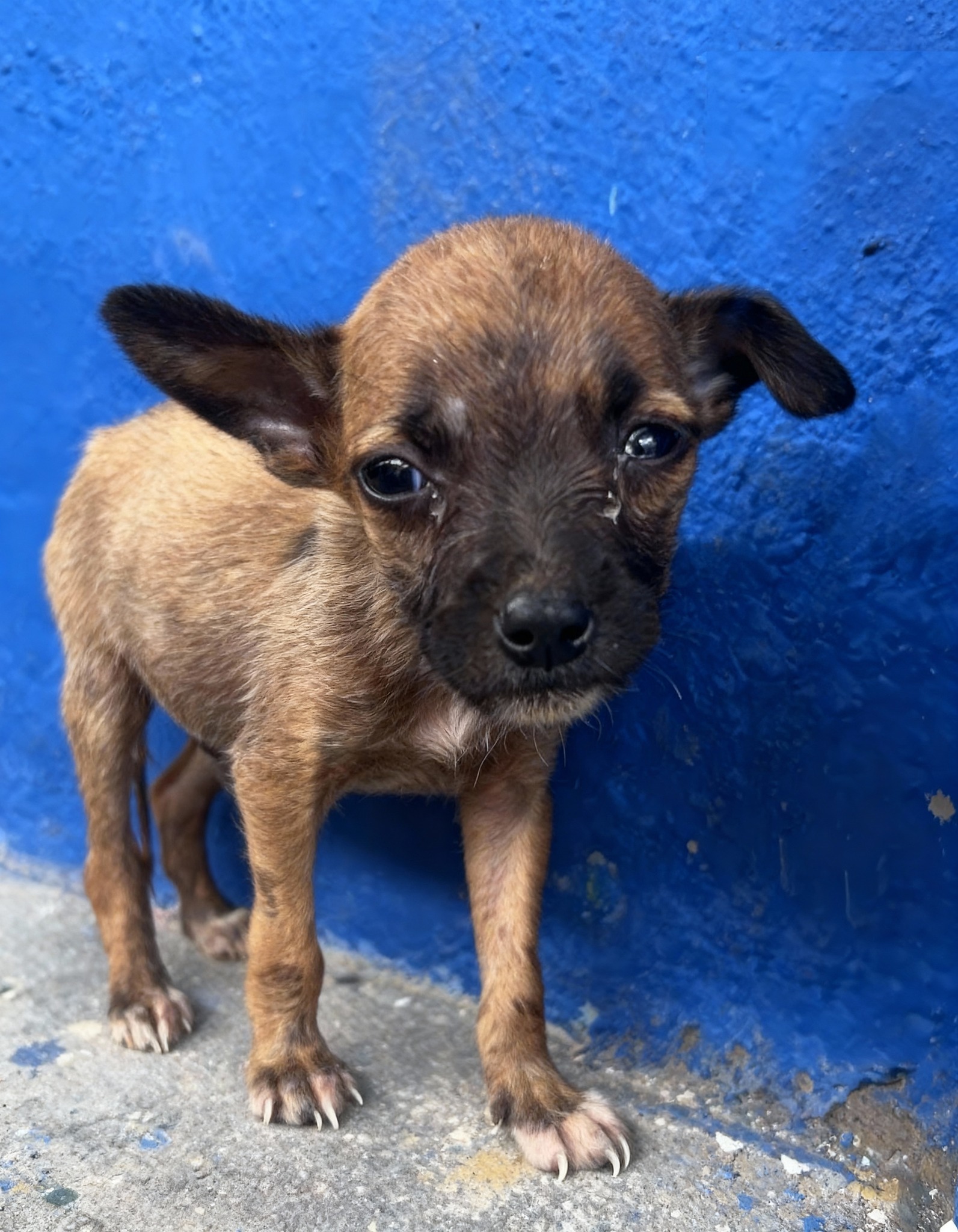 The small, vulnerable figure of a puppy, barely more than a tiny bundle of fur and bone, was a stark testament to the harsh realities faced by countless abandoned animals. Discovered on a desolate street corner, against a backdrop of peeling blue paint that offered no comfort, this particular pup, later named Gorgojito, embodied the silent suffering that apathy often allows to fester. His eyes, wide and glistening, seemed to hold an unspoken plea, a silent narrative of loneliness and neglect. It was a sight that would break the toughest of hearts, yet for too many, it remained an unseen tragedy, a fleeting glance dismissed as just “another stray.” The chilling indifference of the world was Gorgojito’s constant companion, a shadow that clung to him more faithfully than any loving owner ever had, until one fateful encounter began to unravel the cruel threads of his existence, weaving a new tapestry of hope and unexpected turns.