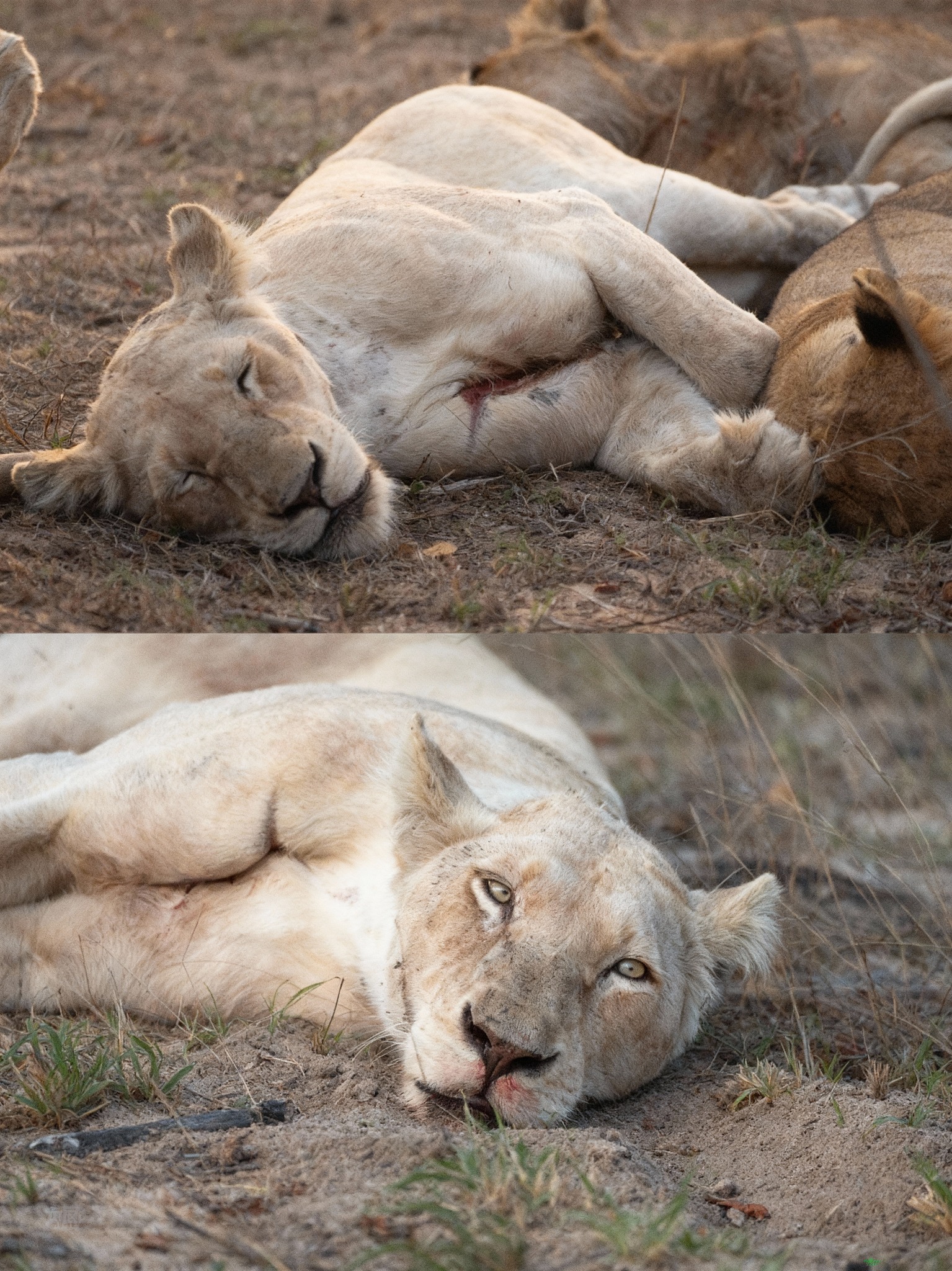 The golden hour cast long shadows across the savanna as the Birmingham Pride rested, but a silent tension hung heavy in the air. A young lioness, known for her spirited hunts and vibrant presence, lay gravely wounded, her flanks still bearing the fresh, brutal testament of a buffalo’s horn. The gash, alarmingly close to a vital artery, pulsed with a dark promise of fate, sending shivers through even the most hardened members of the pride. Her breaths were shallow, each one a fragile testament to her fading strength. The other lionesses, usually boisterous and playful, now moved with a somber grace, their tawny bodies forming a protective, quiet perimeter around their fallen sister. This wasn’t merely an injury; it was a crisis that threatened to unravel the very fabric of their familial unit, a stark reminder of the unforgiving wild where life and death dance on the edge of a blade. The question wasn’t if she would survive, but for how long, and what it would cost the pride to keep her flicker of life alive.