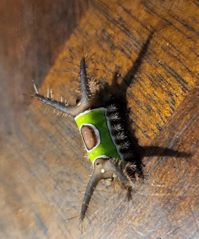 Later, I learned it was a saddle-necked caterpillar. And that I can consider myself incredibly lucky: if I had picked it up, as I intended to in the first seconds, everything could have ended very badly.