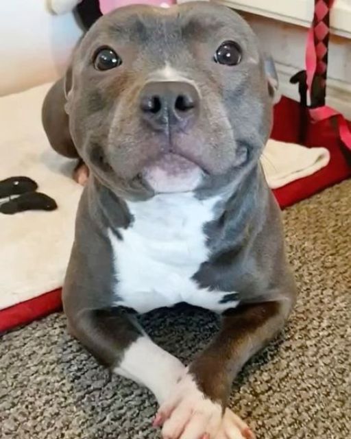 Lola, my pit bull, has this adorable habit of crossing her paws and smiling like she’s posing for a photo. It started as a joke, but now it’s her signature move—and it melts hearts. Well, most hearts.