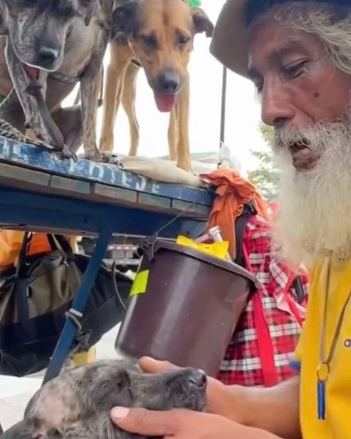 In his hands was a sick, trembling dog. He wasn’t just petting her—he was speaking to her softly, almost like singing. She began to calm down. Then all the other dogs lifted their heads in unison, just listening.