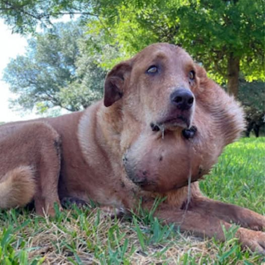 Jake’s story is one of hardship and hope, highlighting a journey from neglect to healing. For six years, Jake endured the pain and discomfort of a growing salivary tumor on his face, mistaken by his previous family as a snake bite.This misunderstanding left him to suffer without the proper care and treatment he desperately needed.His fate took a turn when he was found wandering alone in a secluded part of Texas. Recognizing his dire condition, a dedicated animal rescue team quickly took action.