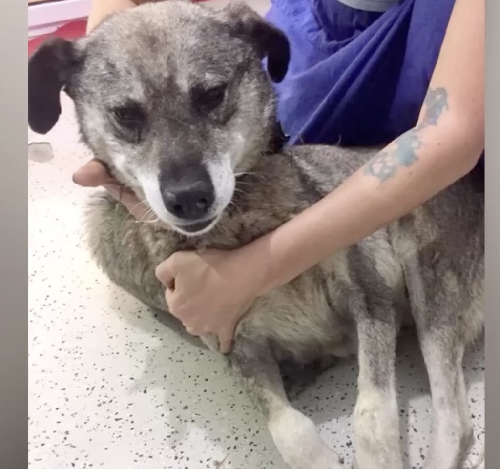 At the veterinary clinic, the true extent of Bunica’s condition became heartbreakingly clear. The veterinarian examined her with quiet disbelief—the tumor was far larger and heavier than anyone expected. It was a dark, swollen mass that had stretched her skin and pressed painfully against her spine. The vet explained that it had likely been growing for years, slowly robbing her of her strength. Yet, despite everything, Bunica was still fighting to live. Her courage touched everyone in the room.