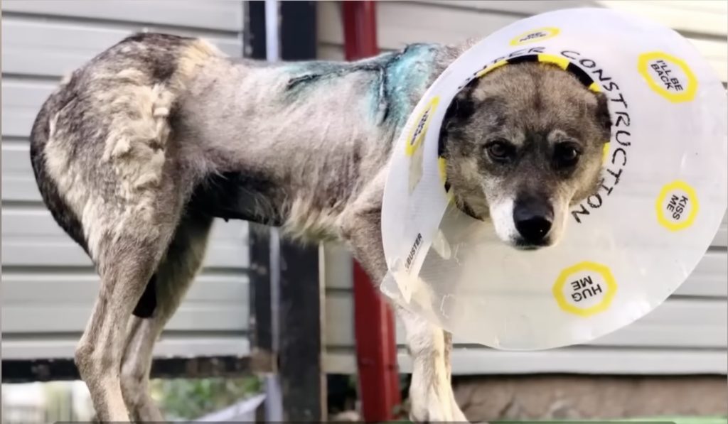 It began on a quiet afternoon when rescuers received a call about a frail stray dog struggling to move along the edge of a dusty road. The dog, later named Bunica, was barely recognizable as she limped forward, her back burdened by an enormous growth that seemed to weigh down her every step. Her thin body trembled with exhaustion, and her cautious eyes darted in fear whenever someone tried to get close. It was clear that Bunica had endured a long time of suffering, surviving on scraps and sheer willpower, abandoned by a world that had once promised her kindness.
