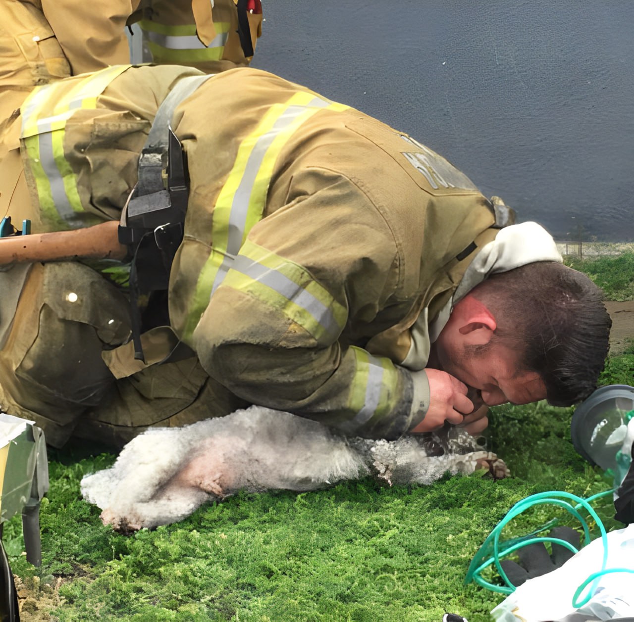 Before to putting the puppy in an oxygen mask, Klein performed “mouth-to-snout” CPR on him. Almost 20 minutes later, the dog started breathing on its own again. He became cognizant again and started to move. Then, neighbors picked him up and took him to an animal hospital nearby.