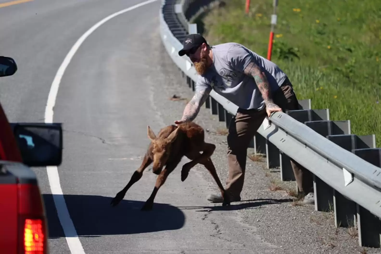 Though wild moose can be dangerous, Tate and his friends had a plan to distract the mother with a trailer. The calf, exhausted, didn’t resist and let himself be helped.