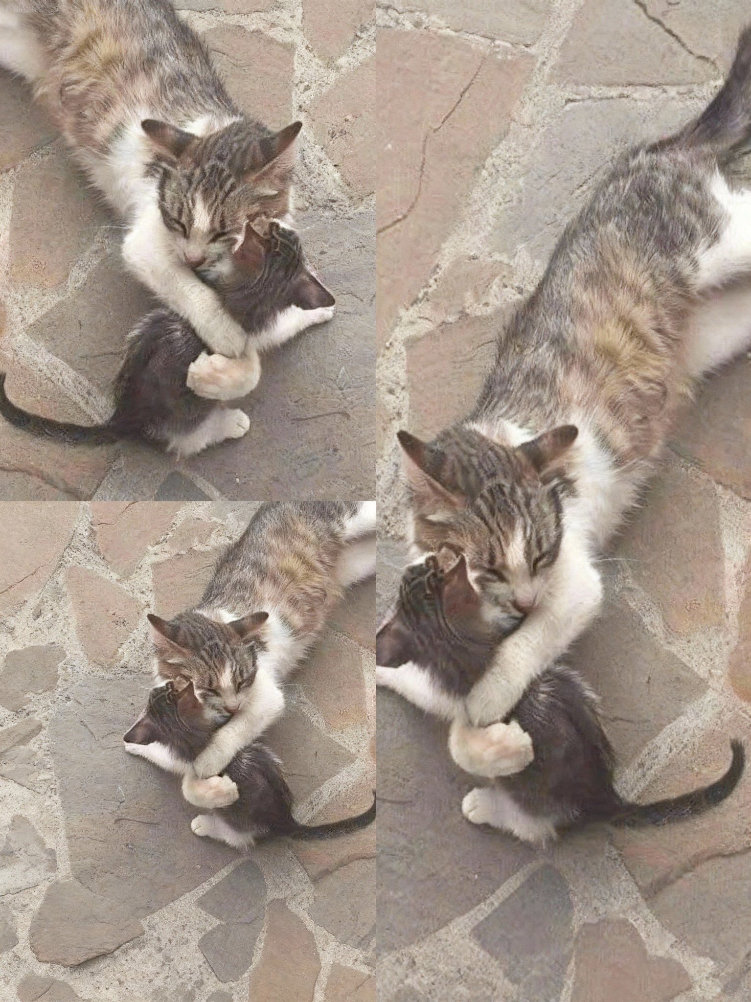 The dawn after that rainy night brought a chilling discovery. Only three kittens remained in the makeshift nest. Panic, raw and visceral, seized Ma. Her cries, sharper and more desperate than any sound she had made before, echoed down the alley as she darted frantically, searching. Mrs. Imani, alerted by the sudden distress, joined the search, her flashlight beam cutting through the gloom, illuminating storm drains and trash bins. And then, a faint, desperate mewling reached them—a tiny gray kitten, cold and barely alive, had slipped into a narrow crack between the alley stones, trapped. Ma was already there, pawing frantically at the unforgiving gap, crying back to her lost baby. Mrs. Imani, with gentle hands and a racing heart, knelt and carefully worked the kitten free. Ma, trembling with relief, took her baby gently in her mouth and carried it back to the precious warmth of the nest.