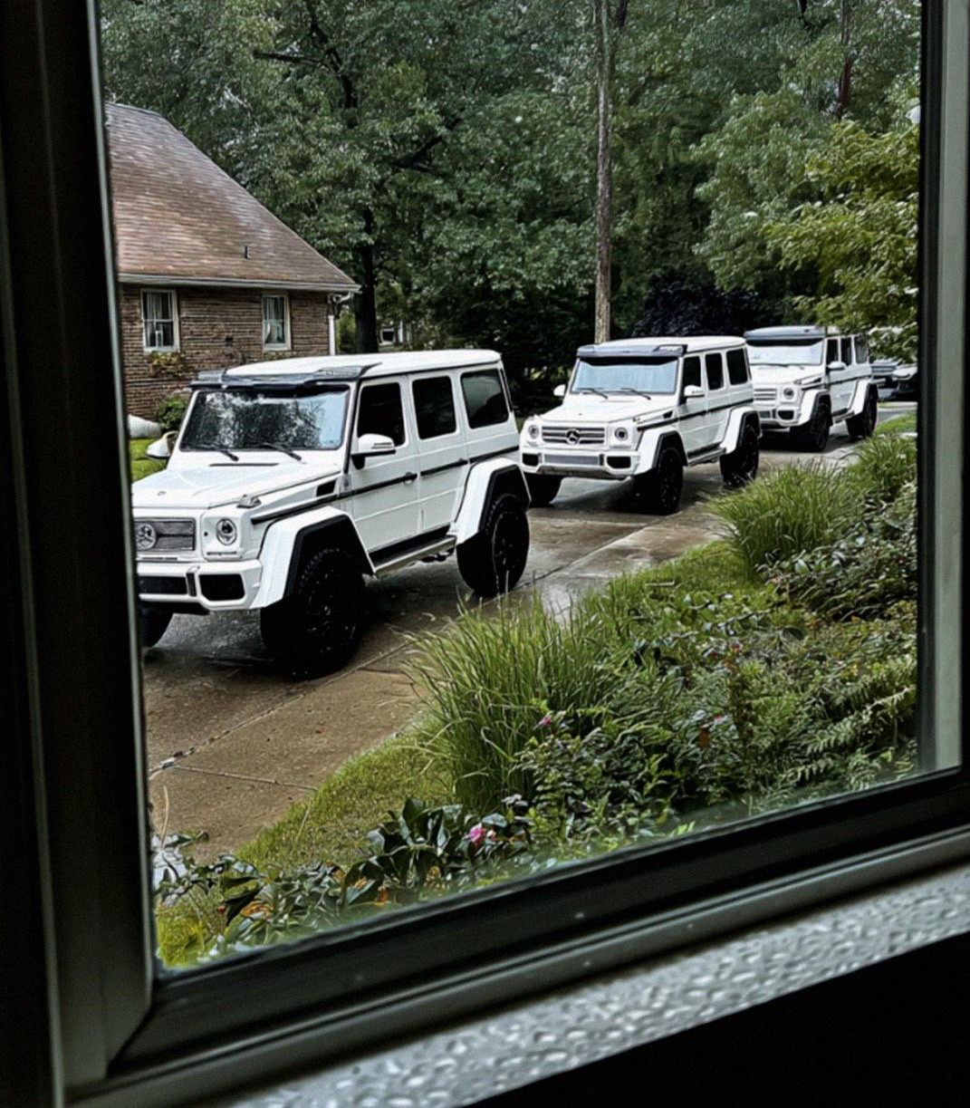 I peeked through the blinds, heart climbing into my throat like it was trying to escape. Three white SUVs gleamed like teeth on the curb. They looked expensive. Really expensive.