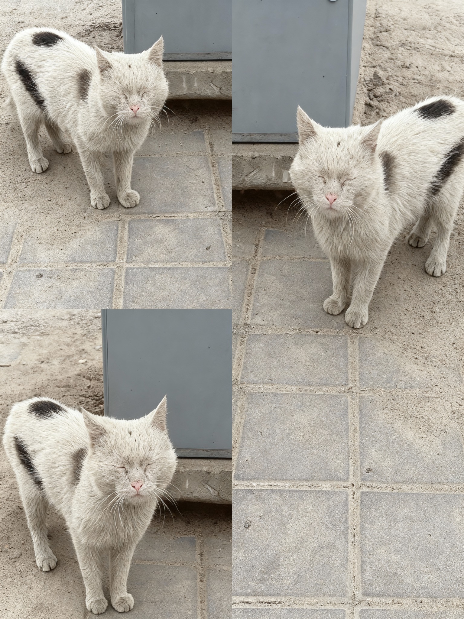 The dusty streets of an overlooked town often hold stories whispered only by the wind, tales of survival and silent courage. One such narrative began to unfold around a small, unassuming feline, a white cat with distinct black patches whose world was shrouded in perpetual twilight. Blind from an unknown affliction, this cat navigated its existence with an astounding grace, its other senses sharpened to compensate for the darkness. Day after day, it would be seen near the same old building, a sentinel of quiet dignity, relying on the faint echoes of human presence and the gentle vibrations of the ground to guide its path. Its fur, once pristine, bore the marks of countless nights spent under open skies, a testament to a life lived on the fringes, yet never truly broken. This was Oliver, though no one called him that then, a nameless shadow moving through a world it could only feel. His story, however, was far from over; it was merely waiting for the right moment, and the right heart, to truly begin.