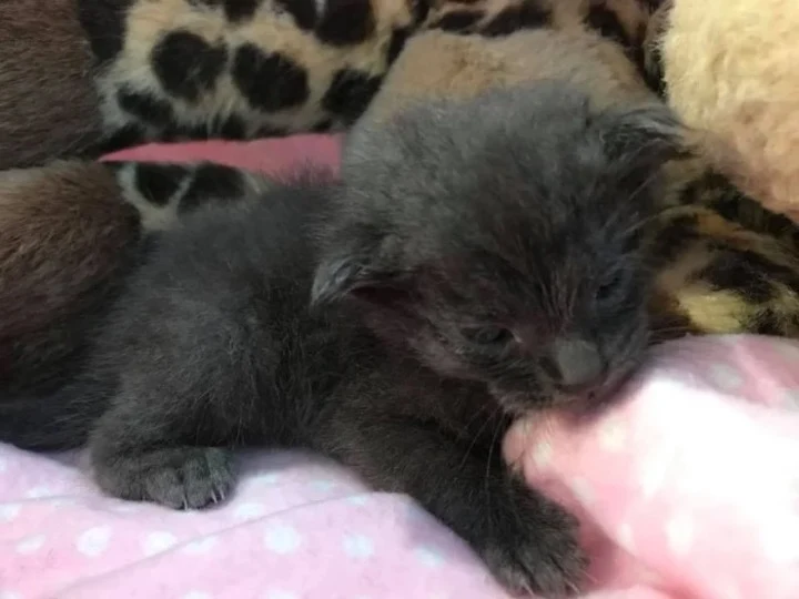 Back at her apartment, Carmen prepared a warm space for Liam. She wrapped him in a soft blanket, fed him small portions of milk, and monitored his breathing through the night. She noticed something extraordinary: despite his small size and fragile condition, Liam’s purring was almost constant—a rhythmic, comforting hum that seemed to echo his will to survive. This tiny “purr machine,” as Carmen affectionately called him, became her focus and source of quiet joy.