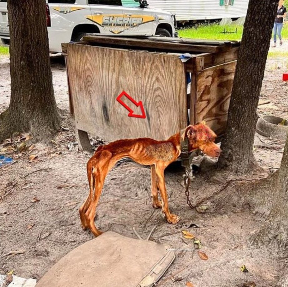 During an eviction process led by the Sheriff’s Department, a severely mistreated dog was found at a residence.