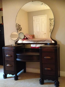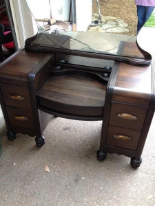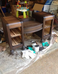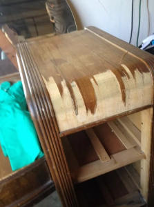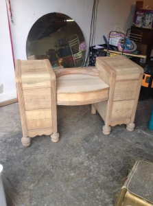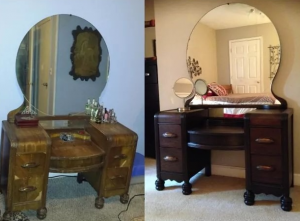 I spotted this vintage vanity on a local barter-and-trade site for just $50. I’d been searching for the perfect one for years, and when I saw it, I knew it had potential to become something I’d truly love and use. The piece was sturdy but the veneer had seen better days. My first task was clear—strip away the damaged veneer and uncover the beauty beneath.