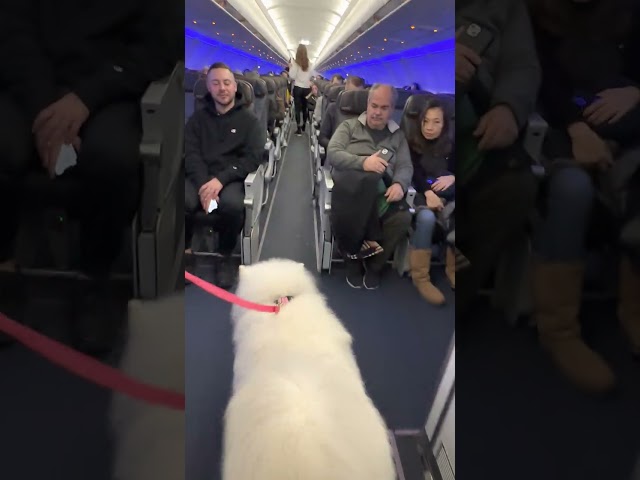 **Samoyed Dog Makes Friends on a Plane While Travelling with Owner**