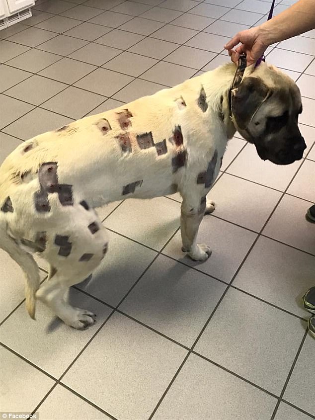 While she was inside, her English Mastiff Jackson had been playing in the backyard. It appeared as though he was covered in bug bites when she called him in.