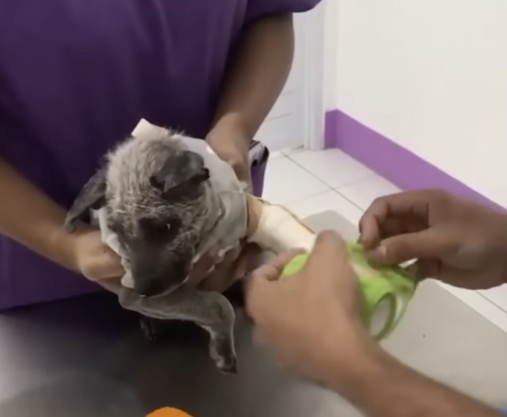 The team immediately began treatment. They cleaned her wounds, gently washed away the dirt, and wrapped her leg in a soft bandage for support. Sadie didn’t resist; she seemed to understand that these hands meant kindness, not harm. Her eyes followed every movement as if she was trying to memorize the faces of those who cared enough to save her.