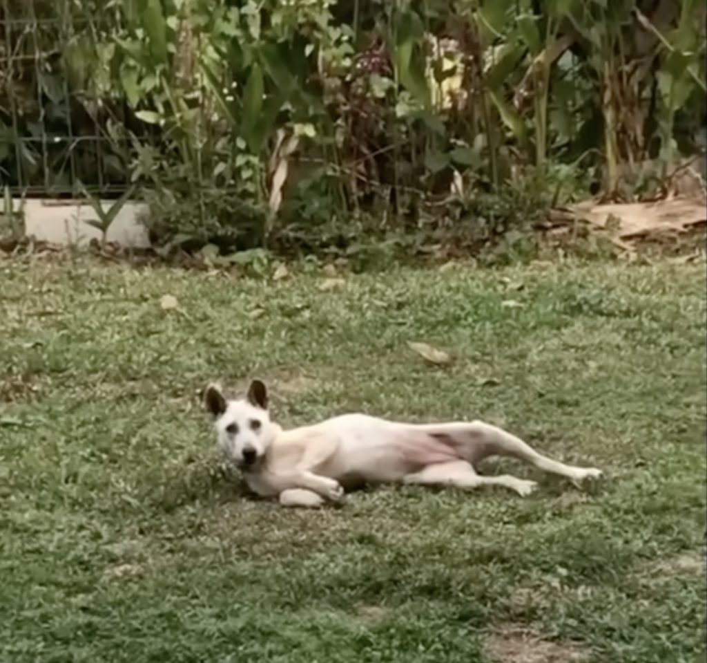 Sadie, as she would later be called, had clearly been through a great deal. Her ribs showed through her skin, and her legs trembled whenever she tried to stand. It was clear she had been on her own for a long time, perhaps abandoned, surviving on whatever scraps she could find. Yet, even in her fragile state, there was a gentleness in her eyes—a quiet plea for help that could touch anyone’s heart.