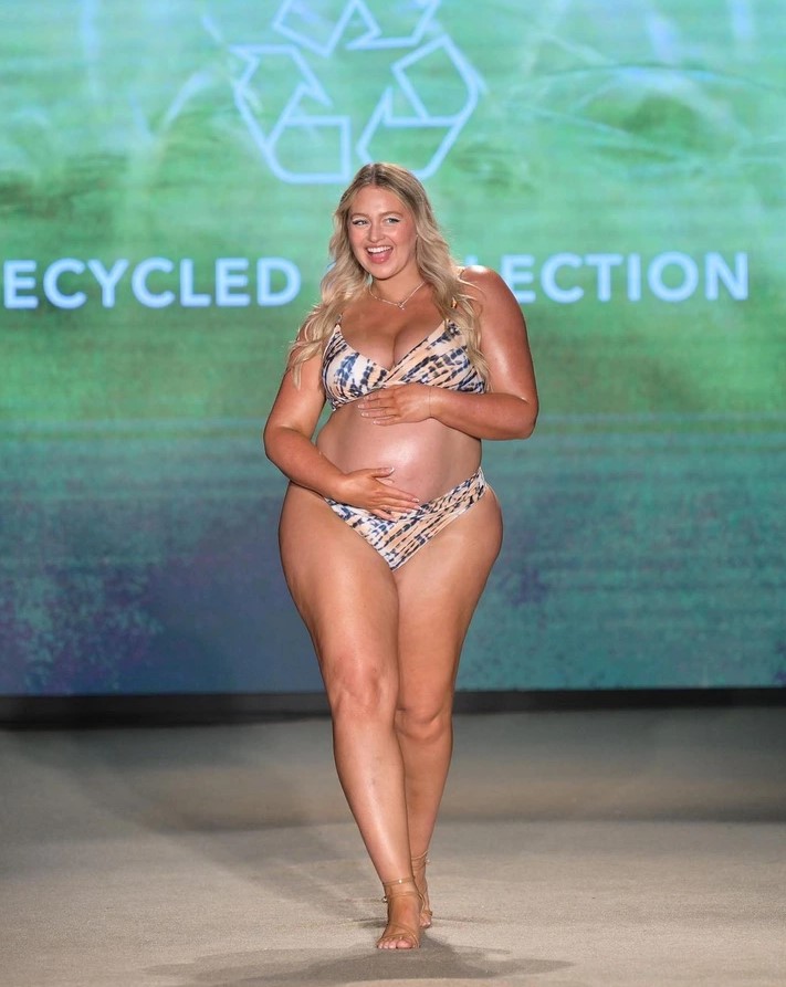 Model Iskra Lawrence was beaming at Miami Swim Week as she proudly showed off her baby bump and growing baby bump on the runway. The 33-year-old looked stunning in a patterned bikini and floral jumpsuit from her Cupshe collection.