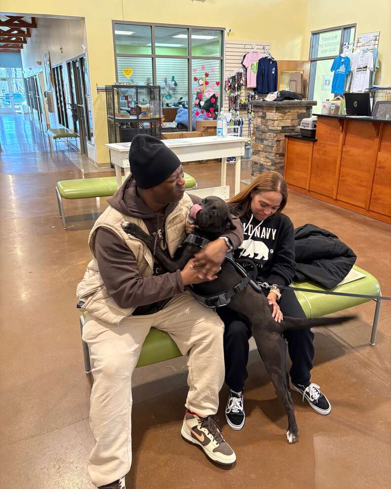 Duke didn’t know it as he was leashed and brought up from the kennels, but his life was about to change again. As he walked down the hallway, he heard his name being called, and it took him a second to place the voice. It was his mom. And there, next to her, was his dad — waiting with open arms.