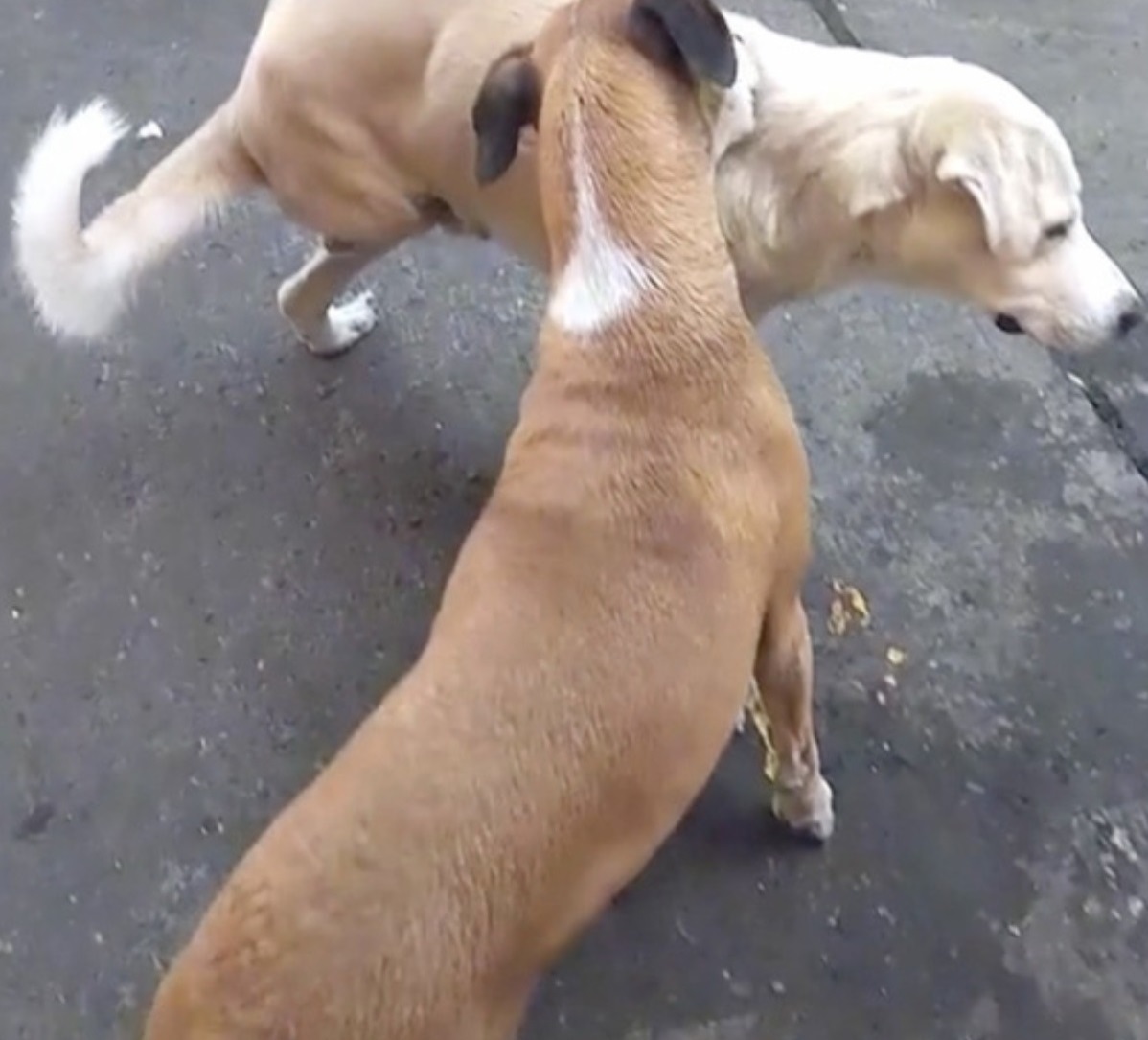 It was a brief glimpse at the loving bond between two friendly dogs.