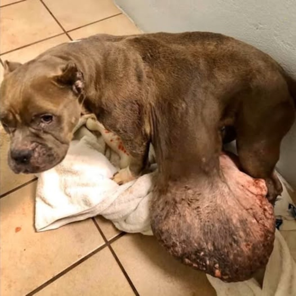 “I’ve endured too long… please, someone save me from this pain…” That silent plea seemed to echo in the dull eyes of a dog whose body, reduced to skin and bones, dragged itself along with difficulty. With each step, a gigantic tumor thumped against the ground, making the simple act of moving an unbearable torture.