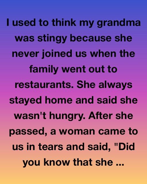 When I was younger, I used to roll my eyes whenever Grandma Lourdes skipped family dinners. She’d smile, wave us off, and say, “I’m not hungry.” Then she’d stay home, nestled in her worn slippers and faded cardigan that carried a faint scent of lavender. I assumed she just disliked crowds or didn’t want to spend money. I thought she was being stingy. I had no idea what was really happening.