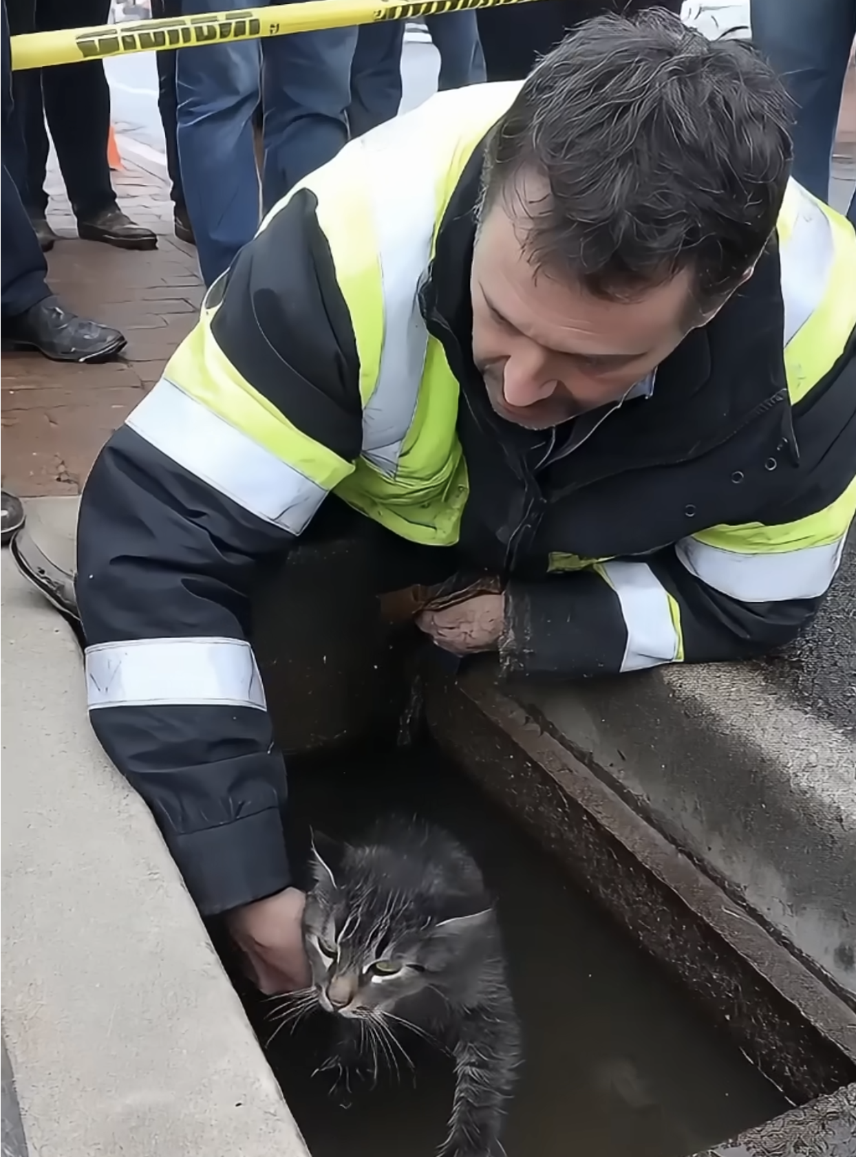 It all began with a faint, desperate meowing that echoed through the quiet streets. Mrs. Thompson, an early riser and a keen gardener, was the first to hear it as she tended to her rose bushes. The sound was unmistakable—it was a cat in distress. Concerned, she followed the cries, which led her to a storm drain at the end of her street.