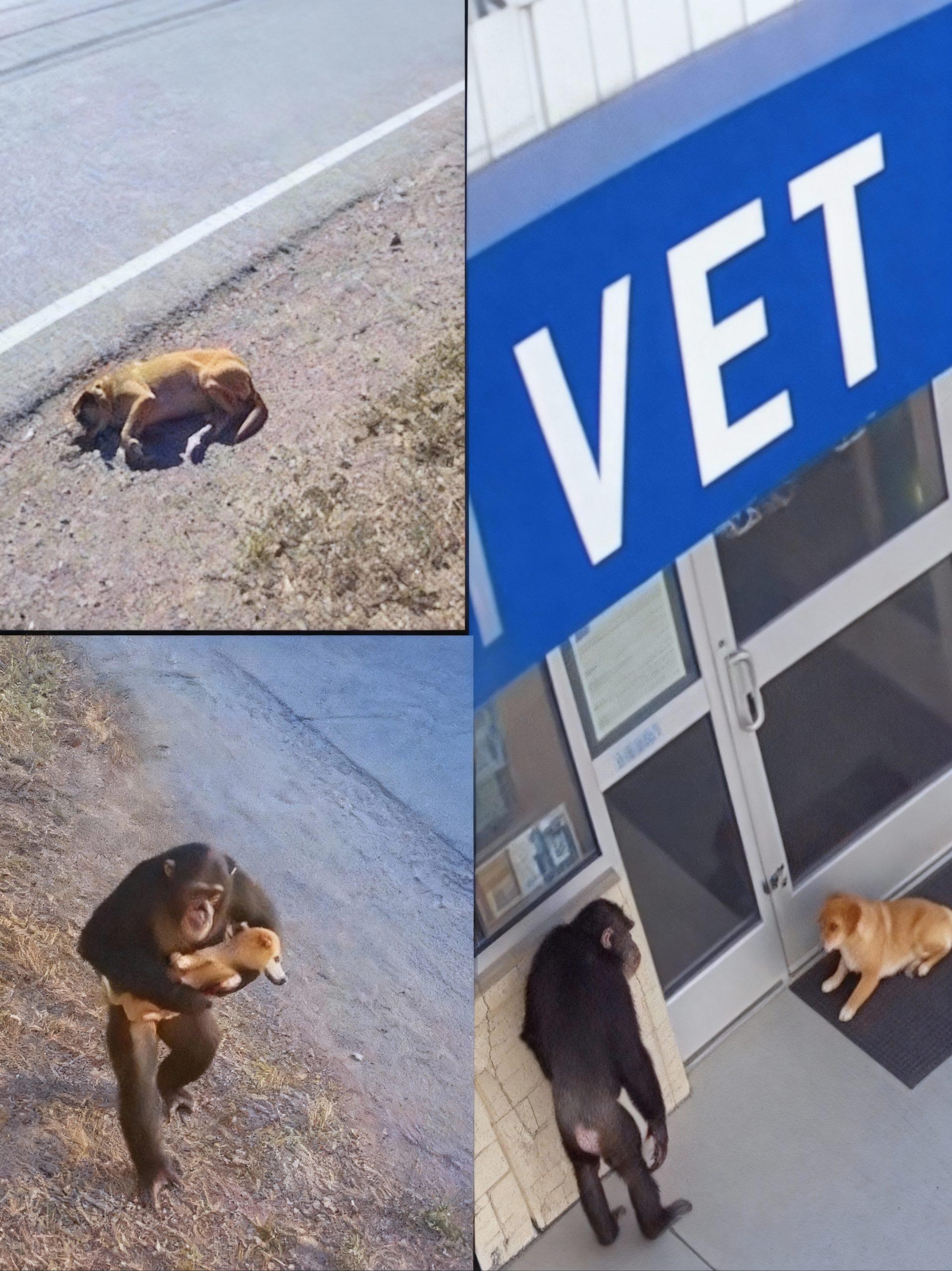 In a world often characterized by its complexities and challenges, moments of profound simplicity and unexpected compassion can emerge, reminding us of the innate goodness that sometimes lies dormant, waiting for the right circumstances to surface. The viral sensation captured in a series of poignant images depicting a chimpanzee rescuing an injured dog is one such instance, a narrative that has resonated deeply across social media platforms and news outlets globally. This isn’t merely a heartwarming tale; it’s a powerful testament to the multifaceted nature of empathy, suggesting that the capacity for altruism is not exclusively a human trait. The sequence of events—from the discovery of a vulnerable, injured canine by a primate, to the careful transportation of the animal, and finally, the apparent seeking of professional medical assistance at a veterinary clinic—paints a vivid picture of interspecies solidarity. This remarkable display challenges our preconceived notions about animal intelligence, emotional depth, and the boundaries of care, prompting us to reflect on what truly defines compassion. It invites a deeper exploration into the behavioral ecology of chimpanzees, often celebrated for their complex social structures and problem-solving abilities, and how these attributes might manifest in truly extraordinary ways when confronted with vulnerability and distress. The story compels us to look beyond species lines and consider the universal language of suffering and the spontaneous impulse to alleviate it, regardless of genetic proximity or learned behavior. It highlights a critical juncture where instinct, intelligence, and an undeniable sense of concern converge, creating a narrative that is both educational and deeply moving, leaving an indelible mark on anyone who encounters it.