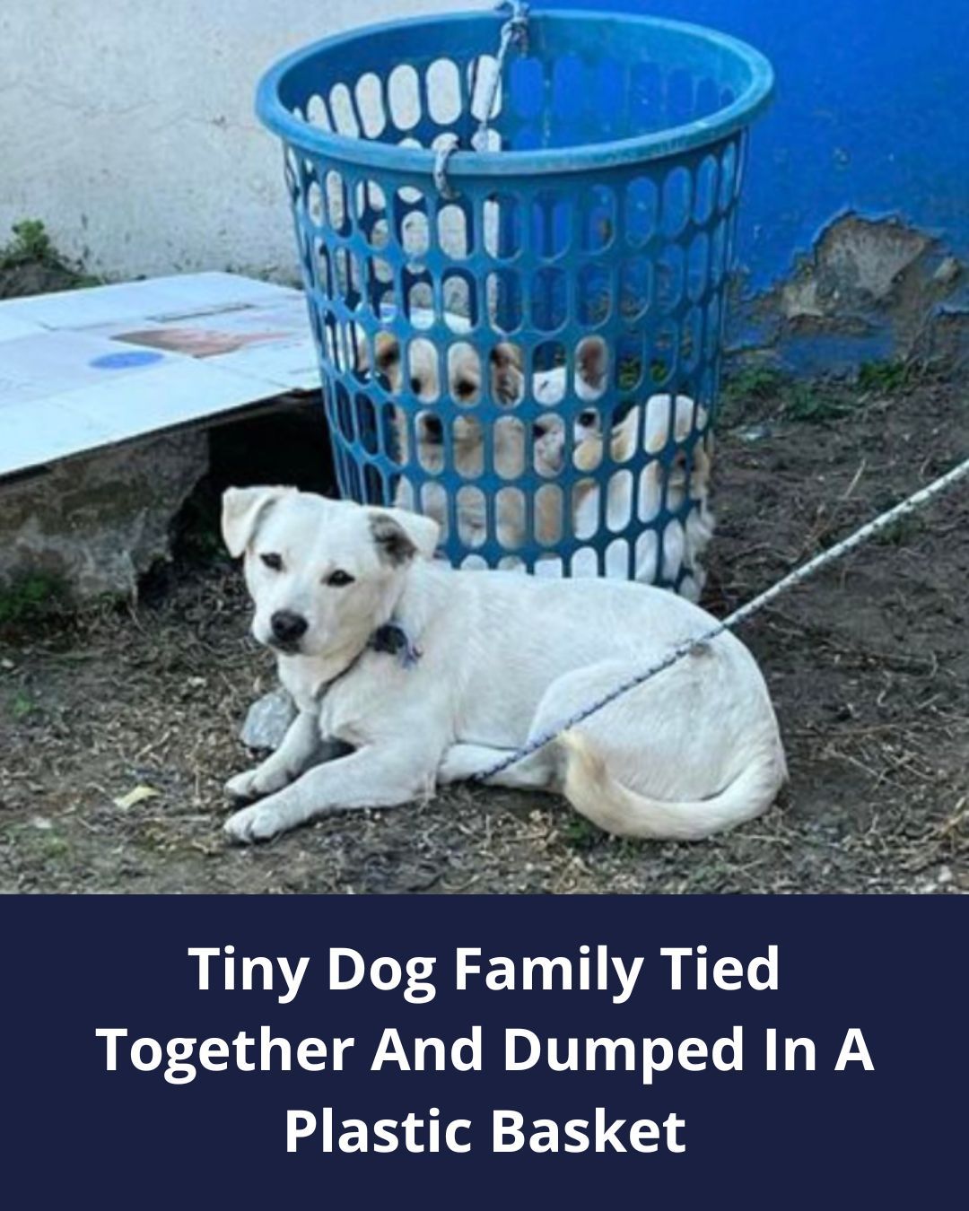 A giant-hearted worker from an industrial area spotted a mom dog and her three babies placed in a tiny plastic basket. Tied together and dumped in one spot, the dogs had no place to go.