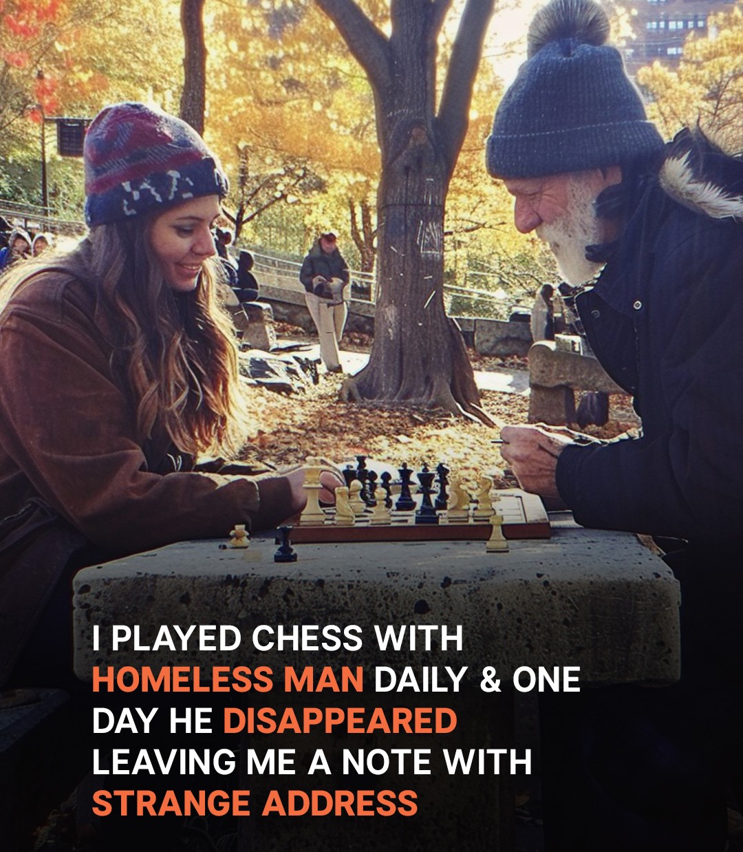 Every day, Jennifer played chess with a homeless man named Tom, who shared stories from his past. He told her he used to be an artist, painting landscapes, and now he expressed his creativity through chess. They connected deeply, both coping with loss—Jennifer grieving her father, and Tom reflecting on his past.